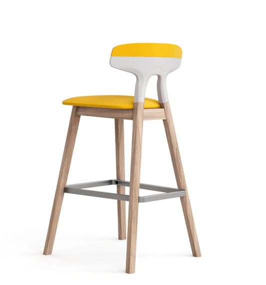 Taburete Sunshine Base Madera Tapizado Amarillo